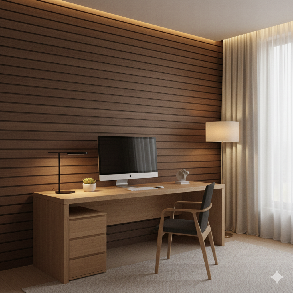 3. มุมทำงาน: เลือกโทนเข้ม เช่น Walnut หรือ Teak เพื่อเพิ่มความโปร