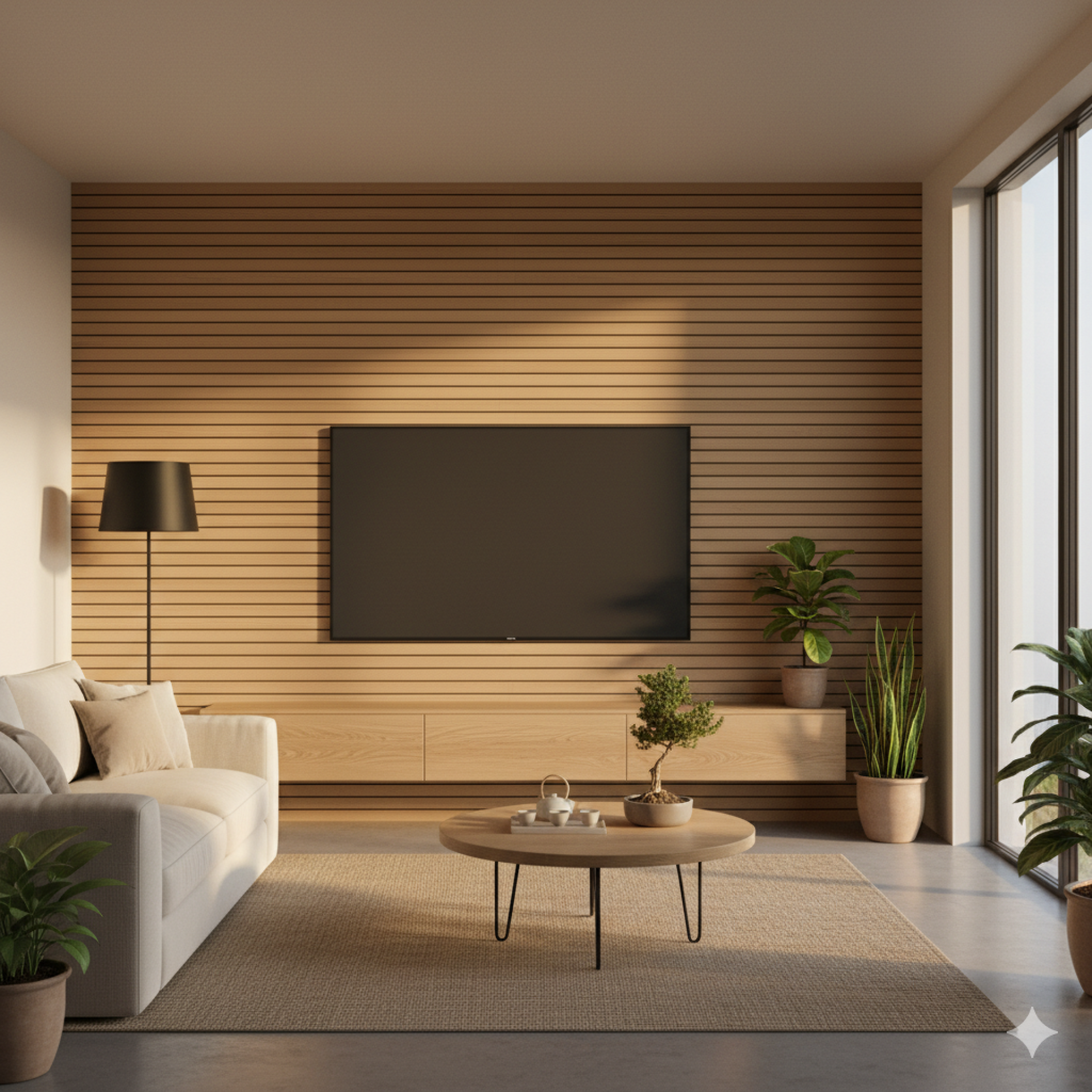 1. ห้องนั่งเล่น: ใช้ตกแต่งผนังหลังโซฟาให้มี Texture ดูอบอุ่น