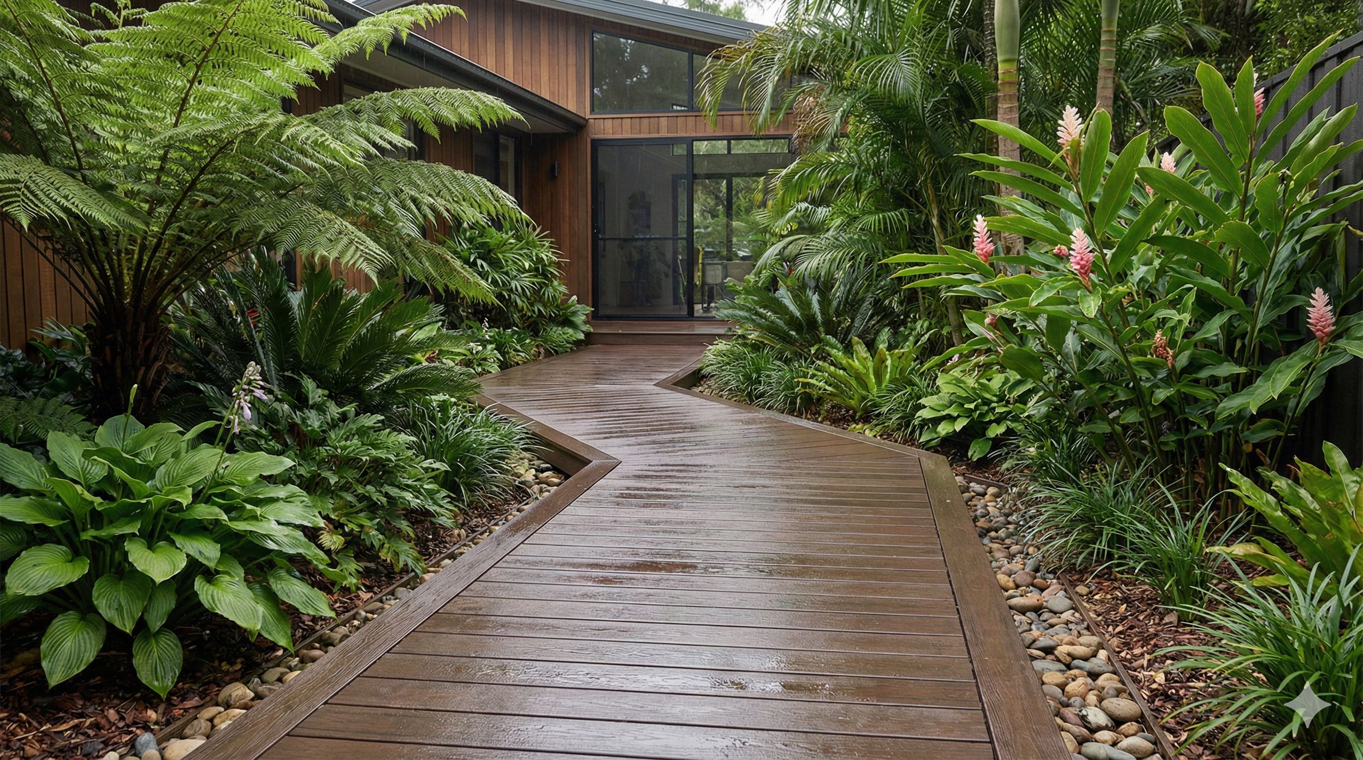 การปูพื้น WPC ในสวนหรือทำเป็นทางเดินช่วยให้พื้นที่สีเขียวดูเป็นระเบียบขึ้น พร้อมเพิ่มความกลมกลืนแบบธรรมชาติ เหมาะกับบ้านที่ต้องการทางเดินที่ใช้งานได้จริง โดยไม่ต้องกังวลเรื่องความชื้นสะสมหรือการดูแลรักษาที่ยุ่งยาก