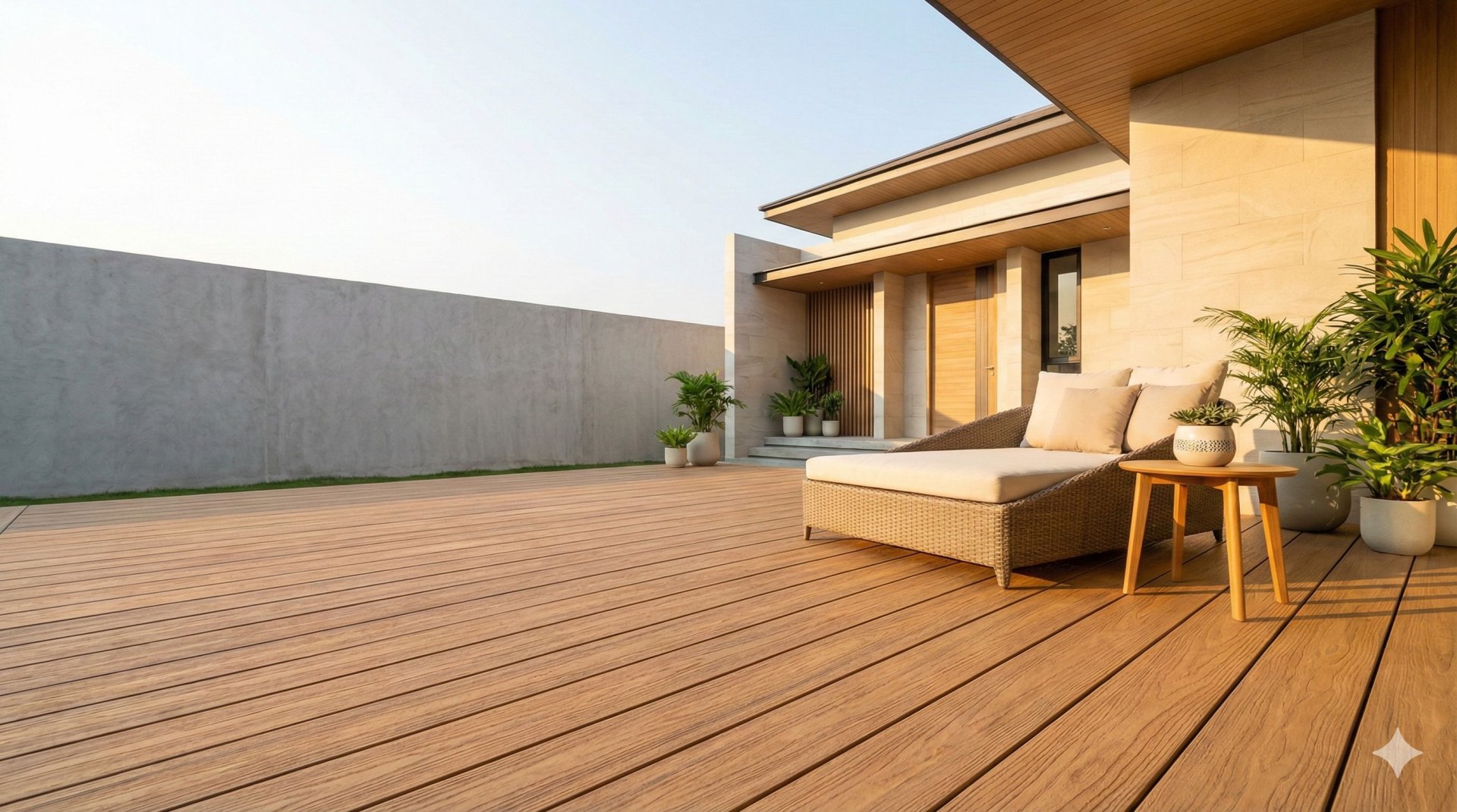 ไม้พื้น WPC ช่วยสร้างบรรยากาศอบอุ่นแบบธรรมชาติ เหมาะกับระเบียงบ้านหรือดาดฟ้าที่ต้องเจอแดดและฝนบ่อย ๆ ให้พื้นที่ใช้งานที่ดูเรียบร้อยและดูแลรักษาง่าย เหมาะกับบ้านสไตล์โมเดิร์น มินิมอล และทรอปิคอลร่วมสมัย